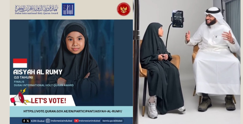 MALANG — Aisyah Ar Rumy, hafizah cilik asal Kabupaten Malang, Jawa Timur, terpilih mewakili Indonesia dalam ajang Dubai International Holy Quran Award yang digelar di Uni Emirat Arab. Meski usianya masih belia dan duduk di bangku kelas IV sekolah dasar, Aisyah telah menunjukkan dedikasi luar biasa dalam menghafal Al-Qur’an.